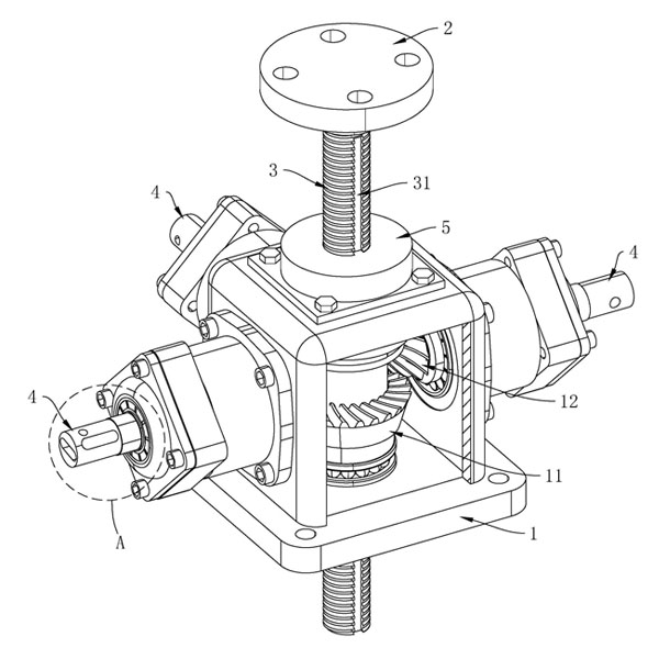 - 減速機(jī)構(gòu):一般采用錐齒輪減速器,具有減速比易調(diào)節(jié)、安裝使用便捷、體積小、無(wú)噪音、自重輕等特點(diǎn),可將驅(qū)動(dòng)裝置的高速旋轉(zhuǎn)運(yùn)動(dòng)轉(zhuǎn)換為適合滾珠絲杠升降機(jī)的低速高扭矩運(yùn)動(dòng)。